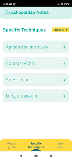 Echocardio Notes is a free smartphone and tablet application, designed to provide up-to-date reference values and protocols in echocardiography through a quick, clean and intuitive interface.