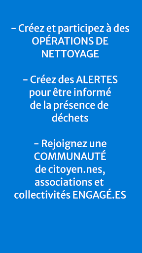 Que vous soyez une association déjà impliquée et active dans le domaine du nettoyage, collectivité, entreprise, ... ou un particulier qui souhaite s’investir d’avantage... notre appli est un outil collaboratif qui vous donne accès au réseau local de personnes, actives et engagées.