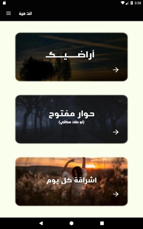 حيث ستواجه في التطبيق ثلات اقسام.