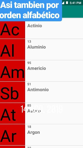 Esta aplicación facilita los datos de cada elemento,para ayudar en el estudio