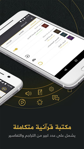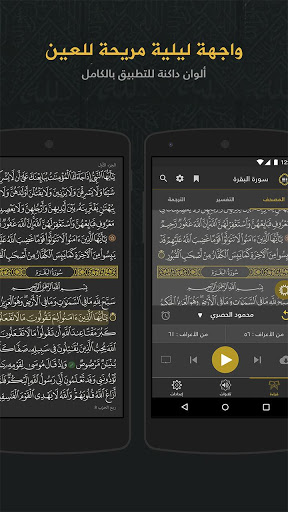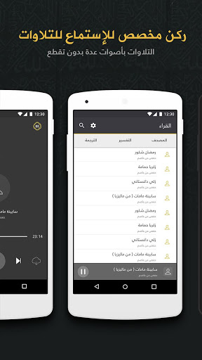 * Listen to Qur'an recitation from many reciters of Islamic world, and many narrations “Riwayat”, with highlighting verses that the reciter reads.