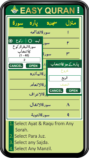 ** Search any Para, Surah, Ayat, Roku & Manzil