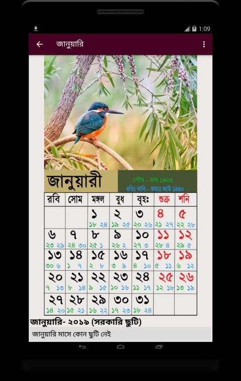 ক্যালেন্ডার ২০১৯,বাংলা ক্যালেন্ডার ২০১৯ - Bangla Calendar 2019,২০১৯ সরকারি