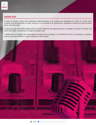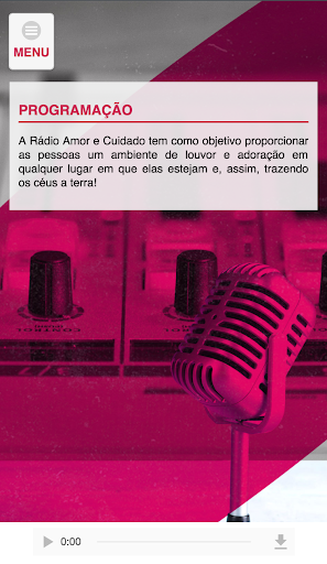A Rádio Amor e Cuidado tem como objetivo proporcionar as pessoas um ambiente de louvor e adoração em qualquer lugar em que elas estejam e, assim, trazendo os céus a terra!