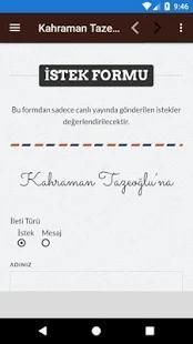 You can listen to the radio broadcasts of Kahraman TAZEOĞLU which will be broadcasted only in this application and give a gift to your loved ones using the request panel.