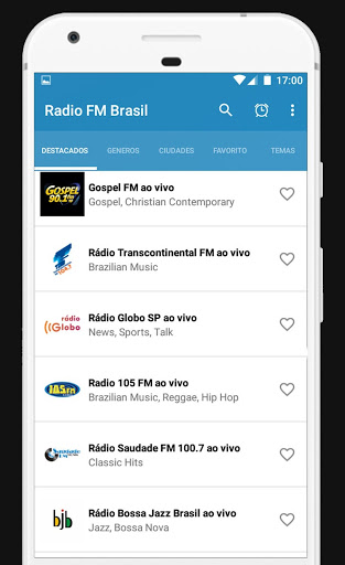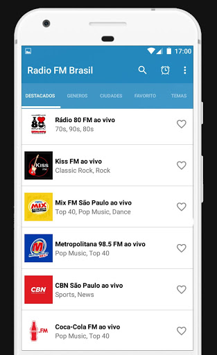 Your favorite Brazilian radios can be saved in the favorites option, so you can quickly listen to your favorite Brazil Radio FM