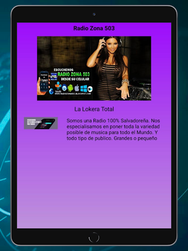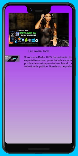 Radio Zone 503 เป็นหนึ่งในวิทยุของ El Salvador ที่สามารถปรับสดออนไลน์ได้วิทยุและแอพของเราได้รับการออกแบบมาเพื่อความบันเทิงของทั้งครอบครัวด้วยโปรแกรมที่หลากหลายซึ่งรวมถึงดนตรีข่าวกีฬาการสัมภาษณ์และอื่น ๆ อีกมากมายเรื่องราวของเราเริ่มต้นขึ้นในปี 2009 เมื่อกลุ่มเพื่อนตัดสินใจที่จะสร้างวิทยุออนไลน์เพื่อแบ่งปันโปรแกรมที่ชื่นชอบกับโลกเมื่อเวลาผ่านไปวิทยุของเรามีการพัฒนาโดยรวมเทคโนโลยีใหม่เพื่อปรับปรุงคุณภาพของเนื้อหาของเราปัจจุบัน Radio Zone 503 มีแอปพลิเคชันสำหรับอุปกรณ์มือถือซึ่งช่วยให้ผู้ฟังของเราเพลิดเพลินกับโปรแกรมของเราได้ทุกที่ในโลกจุดประสงค์ของเราคือการเติบโตอย่างต่อเนื่องและขอบคุณผู้ฟังของเราถึงประสบการณ์ทางวิทยุออนไลน์ที่ดีที่สุดดังนั้นอย่าลังเลที่จะดาวน์โหลดแอพของเราและเริ่มเพลิดเพลินกับ Radio Zone 503 El Salvador