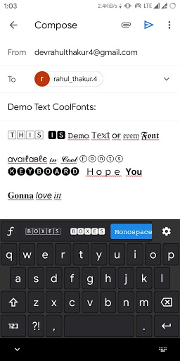 With CoolFonts custom virtual keyboard you can add expressive flair to your text messages, tweets, facebook posts, and everywhere else where text styling is not usually allowed. This keyboard features 30 different font styles, such as: