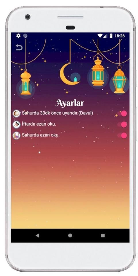 ★ Sahur vaktine 30 dakika kala sizi uyandırmak için sesli olarak ramazan davulu çalar.