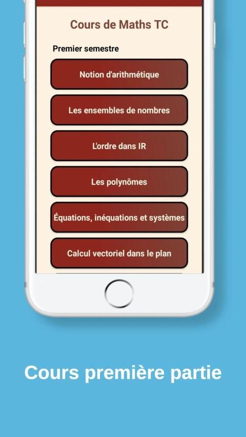 COURS DE MATHEMATIQUE PROPOSE DANS L'APPLICATION :