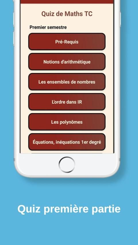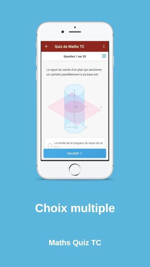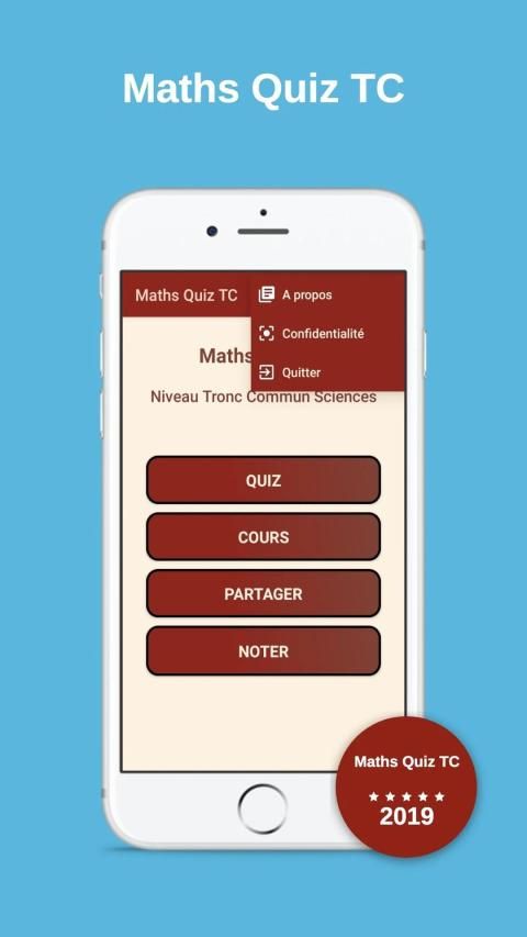 Math Quiz TC est un jeu de quiz mathématiques gratuit conçu pour les étudiants aux lycée ! Il offre des résumés de cours de mathématiques en plus de questionnaires difficiles pour chaque leçon. Sélectionnez une catégorie de votre choix, commencez à jouer et améliorez le niveau !