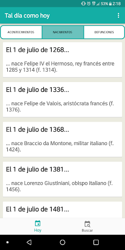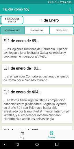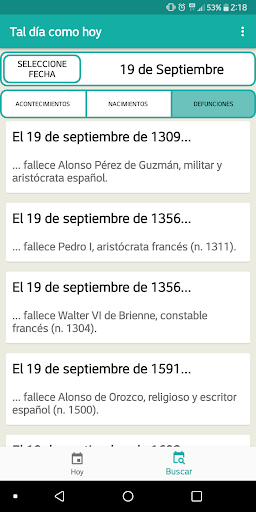 - Disfruta de efemérides diarias - Notificación con una efeméride aleatoria del día presente - Buscador para explorar todas las efemérides de cada uno de los días del año
