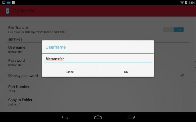 This app is an FTP app used for transferring the files present on the computer to your android device.