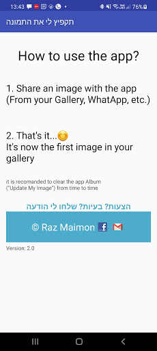 The application is designed to Update old pictures from the gallery in such a way it will be very easy uploading them to Facebook.
