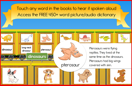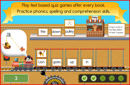 Stuck on a word? Tap and hold to hear every word and access the built in dictionary filled with hundreds of words. Play a unique quiz game at the end of every book to extend the learning. The Reading Train is packed full of tools to help children succeed, all on their own.