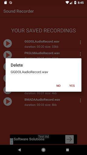 No limit to audio recording length / Play records before saving to test it./Save/pause/resume/cancel recording process control / Delete records before saving and record new one on it./ Easy to use recordings list /Easy and simple User Interface design Internal library / recording list Mobile library / recording list / Delete just from records folder to protect your records