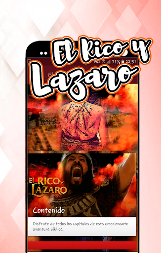Aplicación para teléfonos y tablets Android, en esta App, encontrará el contenido exclusivo de esta super producción bíblica, viva momento a momento, cada capítulo completamente en español, El Rico y Lázaro, novela bíblica, entérese de las novedades de esta serie, el detrás de cámaras, entrevista con los actores, material inédito, y más solo aquí en "EL RICO Y LÁZARO APP, para android, descárguela completamente gratis.
