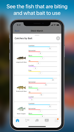 · Bait recommendations for top species in lakes based on season, sky condition, water clarity and wind.