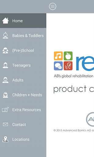 The rehAB Catalogue App gives an overview of all uniquely designed (re)habilitation resources offered by Advanced Bionics for hearing aid and cochlear implant users of all ages to help them hear their best.