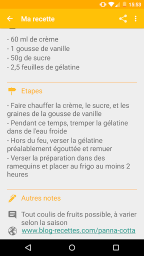 Visualisez ensuite vos recettes, modifiez-les, partagez-les avec vos amis de manière très rapide.