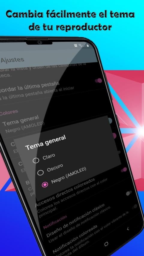 Con esta maravillosa aplicación de música, puedes cambiar los colores del interfaz al que más te agrade para de esa forma sea más cómodo al usarlo.