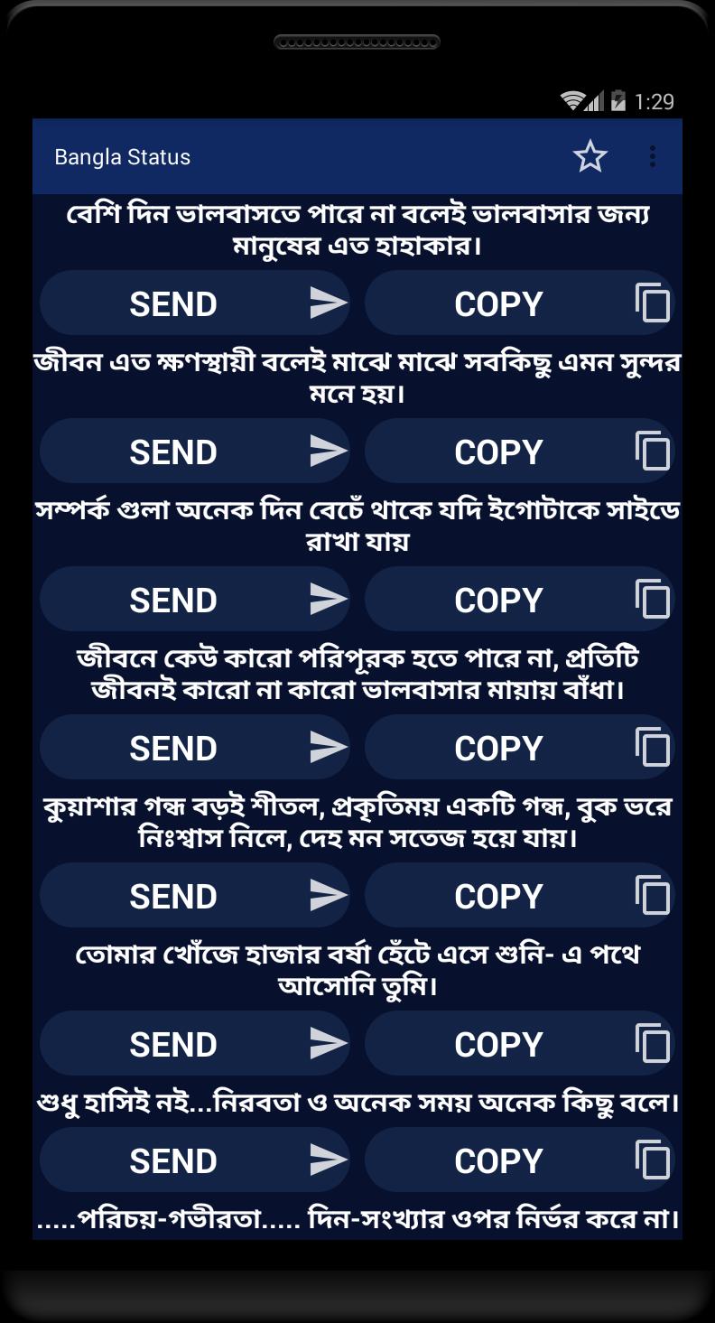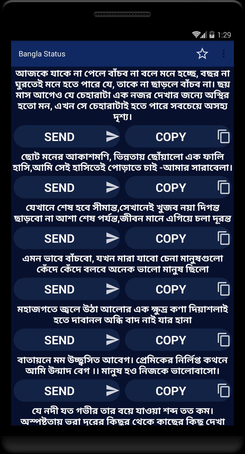 যা যা রয়েছে এ্যাপটিতে Intro About Quotes Bangla Status- 2020 প্রেমের স্ট্যাটাস বন্ধু স্ট্যাটাস দুঃখের স্ট্যাটাস বোকা হবার স্ট্যাটাস সকালের স্ট্যাটাস রাতের স্ট্যাটাস বাংলা ফেবু স্ট্যাটাস