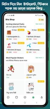 Keep chatting with friends and earn 1 bit for every word you type. Use bits to buy interesting items from the Bits Store. When paired with Ridmik Keyboard, you can get double bits!
