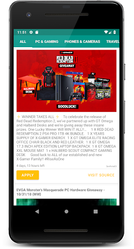Giveawayers lets you find giveaways and apply easily!