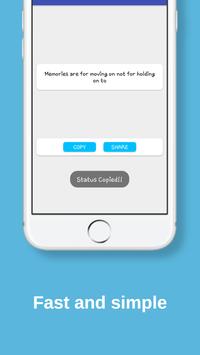 Status is really hard to find a status which are not used by anyone and are original. So here we have compiled some of the best,latest and untouched list for you.Which includes status,quotes and many more.This apps is updated regularly so stay tuned for new additions.