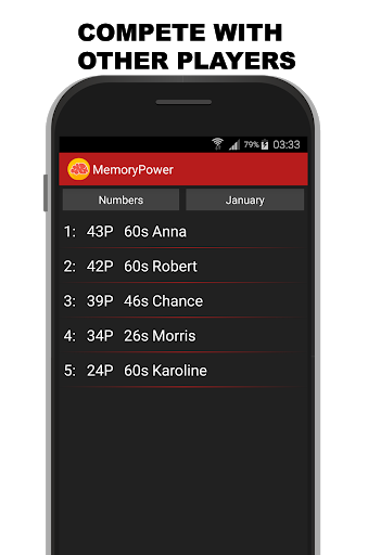 This application will allow you to train your memory to the fullest. Compete with friends and other players who has the best memory. Track your progress daily! Designed in mind for memory techniques.