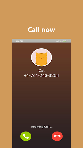 Fake Vedio call and Chat from Cat is a simulation prank app that fakes incoming calls and fake incoming video calls, and simulate fake conversation with Cat ,