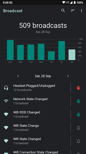 App shows a daywise list of broadcast for each day (previous 4 weeks) in chart and list format. You can sort this list in different formats.