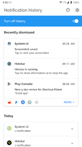 Saves all dismissed and snoozed notifications.