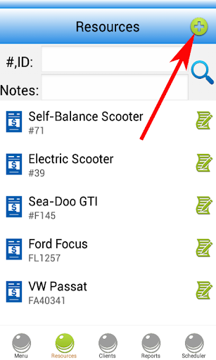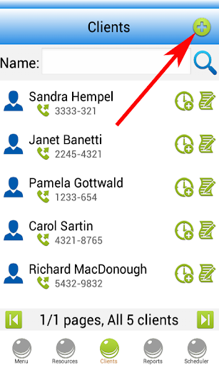Add new client/resource: you can tap the " " in the upper-right corner of the screen (please find attached screenshots - the red arrows show where..).