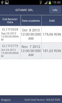 butonul "Info", aplicatia poate prelua atat informatiile generale despre tertul selectat cat si numarul de mobil de contact al societatii, pe care il poate apela automat, fara sa mai fie nevoie introducerea numarului de telefon manual.