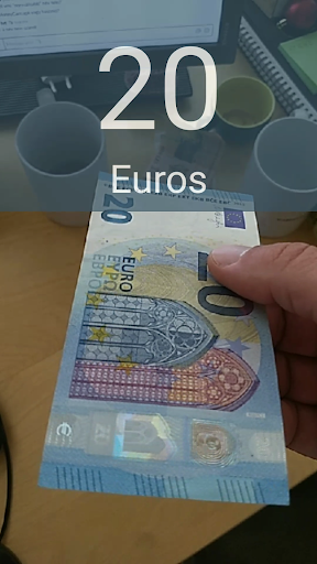 The app features bill recognition on mid-range Android smart phones, sound instructions for helping visually impaired with money placement, recognition, and vibration when the bill is in the right position.