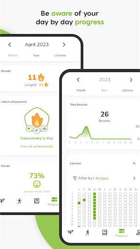 Utilize Day Log's limitless customization options to track everything you can imagine – from personal goals and habits to weight management, book reading progress, gym attendance, and hydration levels. Whether you aspire to build healthier routines or strive for specific achievements, Day Log offers the tools to set and reach your goals.