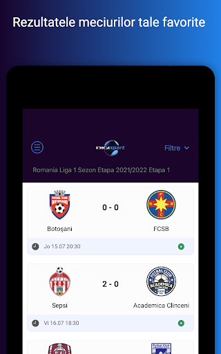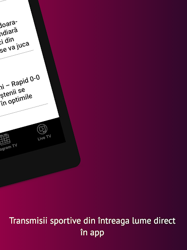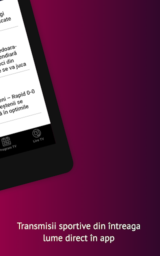 Aplicaţia care te ajută să ajungi mult mai repede la sporturile şi la informaţiile care te interesează. Pe lângă cea mai bogată ofertă din România de știri și transmisiuni live din sport, acum ai posibilitate să fii ţinut personal la curent cu startul meciurilor sau al emisiunilor pe care vrei să le urmăreşti