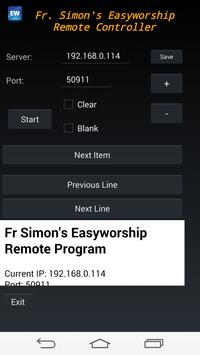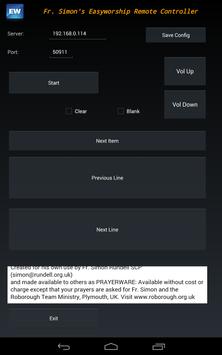 There are times when you need to control Easyworship yourself - in schools or in small group worship settings. I wrote this client to interact with my PC-based Server Program which can be downloaded from http://www.webinformatique.co.uk/EWServer_setup.exe