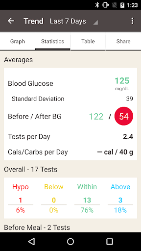 • Advanced logbook options including: meals (size, carbs, or calories), food images, insulin, exercise, medications, blood pressure, weight, health state, and notes.