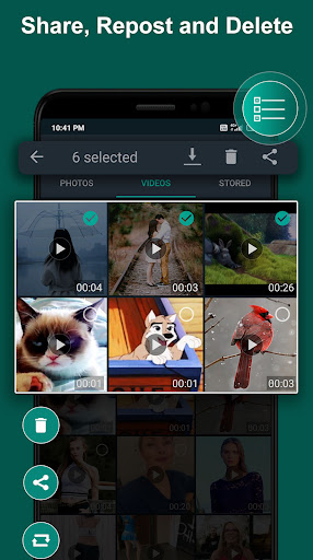 Install this Status Downloader for WhatsApp app and enjoy lots of top features like Saving HD status, dark theme, built-in player, repost/delete/share etc.