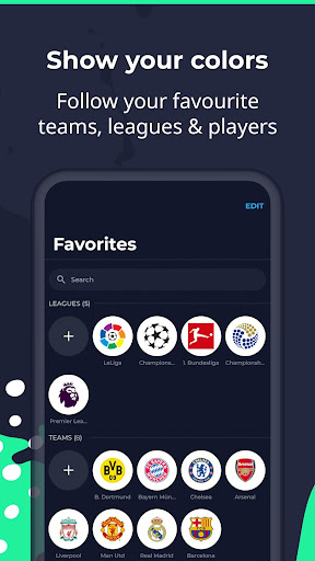 Are you crazy about Harry Kane, Messi or Kevin de Bruyne? Or just mad about FC Barcelona, Liverpool or the Premier League in general? Then choose your favourite players, clubs, national teams or leagues, and get up-to-date news and content that's 100% adapted to you interests.