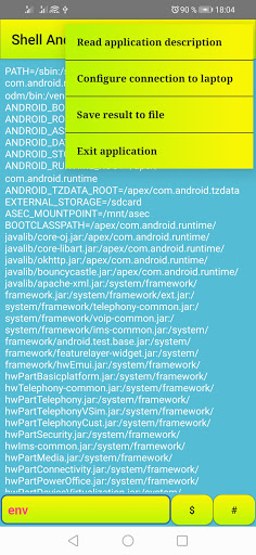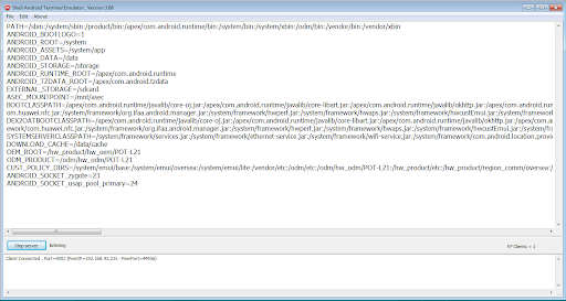 You can run shell commands by this terminal ; Also if you have root privileges you can run other commands that you can't run them as regular user , After running commands you can save the results to file or send results to your laptop which run Windows operating system ; So you need to specify the IP Address and the port of your server ; The server are free and you can download it from our site www.30languages.com
