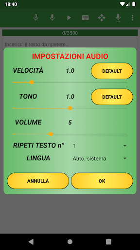 NOTE: Assicuratevi di aver impostato la lingua corretta per il motore di sintesi vocale, altrimenti potrebbe non funzionare correttamente.