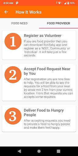 ➼ Register as Volunteer :- If you are food provider then you can download RotiSabji app and register as a "NGO", "Community" or "Individual". It will take just a few seconds.