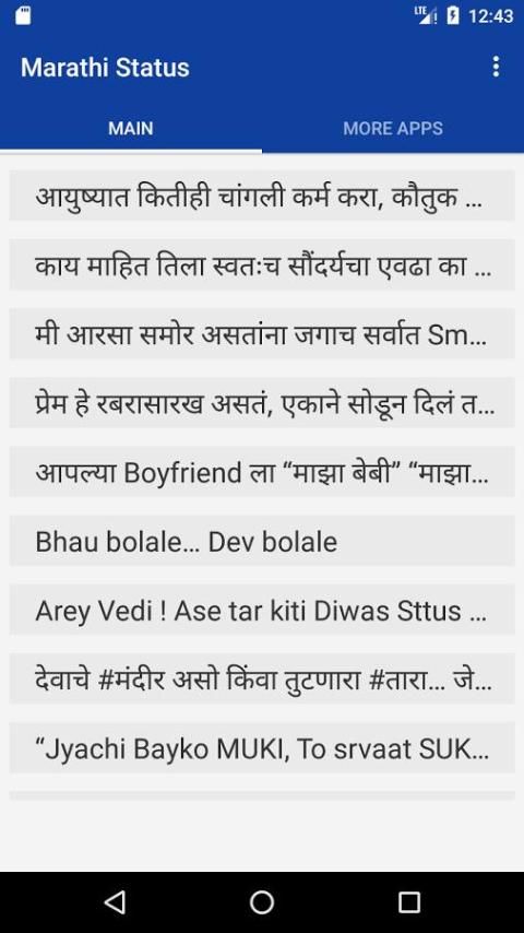There's no denying the fact that 30,000+ users downloaded Marathi Status latest version on 9Apps for free every week! The app has also been given a bit of a visual makeover, too This hot app was released on 2018-02-10. I believe that if you are an android apps lover, you would not miss it.