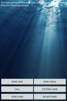 Loan Shark gives you the possibility to track your loaned items in an organized way. Never lose anything anymore by choosing the various notification options. Take a photo of the item to remember what it looked like before you lend it out. Connect items to contacts from your contact list and enter the desired loan period. Get a reminder when the loan period has expired. And send a message to get back the loaned item.