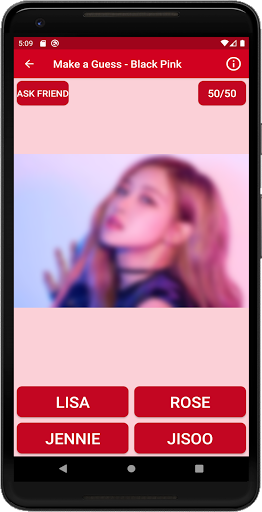 app is fun and compelling way to de-stress and spend free time! Application has high quality blurred pictures and images for you to guess which Black Pink member like: Lisa, Jisoo, Jennie and Rose is on it. In addition, there are 3 difficulty levels of it. Can’t guess who is it? Don’t worry! The app has also functions “Ask friend” and “50/50” if the choice is too hard. Discover the joy of guessing your favorite Black Pink members and check if you are a big fan of them!