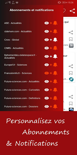 Piliin ang mga mapagkukunan na nais mong tingnan (Science Post.fr, Futura- Sciences.com, Sciences at Avenir.fr ...) at i-activate ang abiso upang makaligtaan ang anumang bagong bagay.