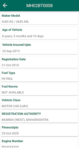 ➠ Find any vehicle information by just using the vehicle number.Vahan Info provides you lots of vehicle registration details containing owner name, vehicle registration date, insurance period and Many more.